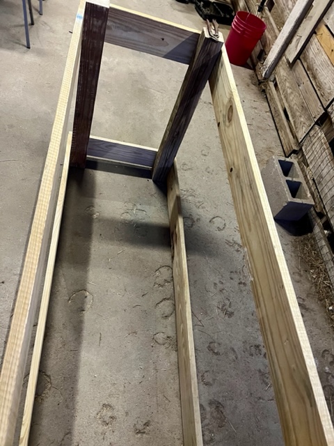 The next step in the process was to have my “cowboy-renaissance” husband, The Outdoorsman, make a sink cabinet for our kitchen. Lucky for him, I had several pictures saved on my virtual best friend, Pinterest! 😉 I combined two ideas to get the design I wanted. We literally walked around our farm and found two 4×4 posts in the puppy kennel that were used to block an escape route and took them out and washed them off to use for the main posts. The Outdoorsman had already had some treated corral boards for some farm projects so he used those to build a sink cabinet of all sink cabinets. If a hurricane or tornado comes our way, we know where to hide. Right there on those shelves! That cabinet weighs a ton and the cast iron sink sitting on top of it makes it unmovable. We are slightly concerned about our kitchen sinking into the ground at the back edge due to this massive piece of furniture.