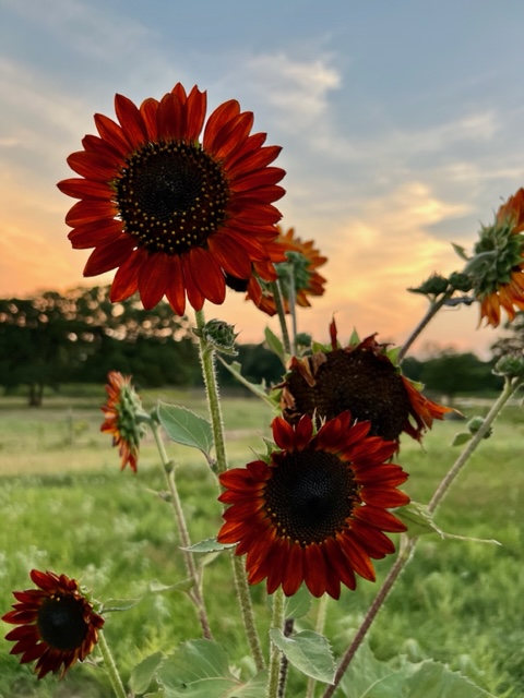 Summer is both stunningly beautiful AND miserably hot here on Green Acres. In life, we have to accept the bad along with the good that comes our way. Push through the knee high weeds to capture the beauty of forgotten sunflowers. Push through an overgrown path to reach the ripened fruit. Look up high to pick the wild grapes that make the savory muscadine jelly.