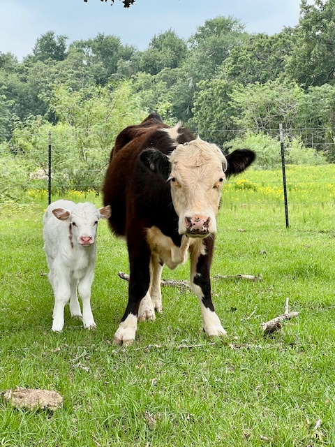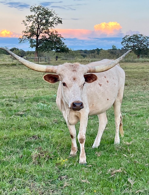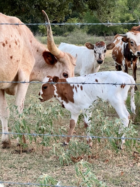 UPDATED on 09/06/24!! Luna is a full breed Texas Longhorn. She recently had a beautiful bull calf named Orion who was sold in the summer of 2024. Luna was born on 03/02/20 and is the daughter of two registered Texas Longhorns, Moonbeam and Duke, who are pictures above. We can give you the information you need to register Luna upon purchase. She was our cutest calf on the farm (see 1st picture below!) and is now a gorgeous young momma cow looking for a new home. We are asking $1,000 for Luna.
