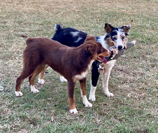 The two girls pictured below are the other half of Green Acres Aussiedoodles! Meet our two full-breed Australian Shepherds, Ruby and Opal. They are both healthy and up to date on vaccinations and worming. They have very loving, obedient, and energetic personalities and love to play and wrestle with one another.