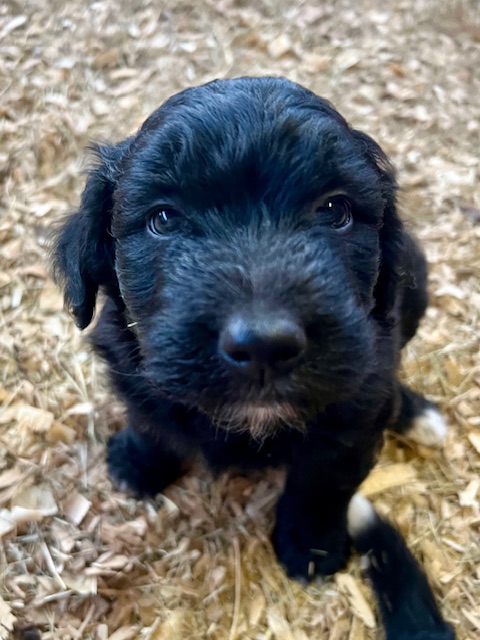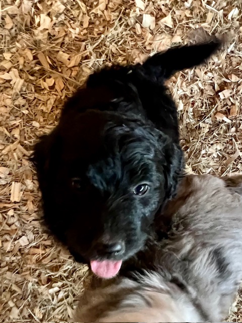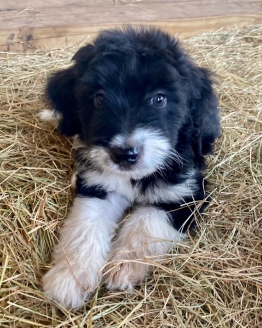 ***As of 11/13/23, we still have one solid black, male Aussiedoodle and one red-tri, male Australian Shepherd available. We are asking $400 for the Aussiedoodle and $150 for the Australian Shepherd because we need to find homes for them quickly. If you cannot pay that amount, please send us a reasonable offer for a puppy and we will consider your offer if it covers the cost of our vet appointments and puppy care over the past three months. We have a contract drawn up for each puppy that itemizes the shots, deworming schedule, and any vet visits covered by Green Acres Aussiedoodles while your puppy is under our care.