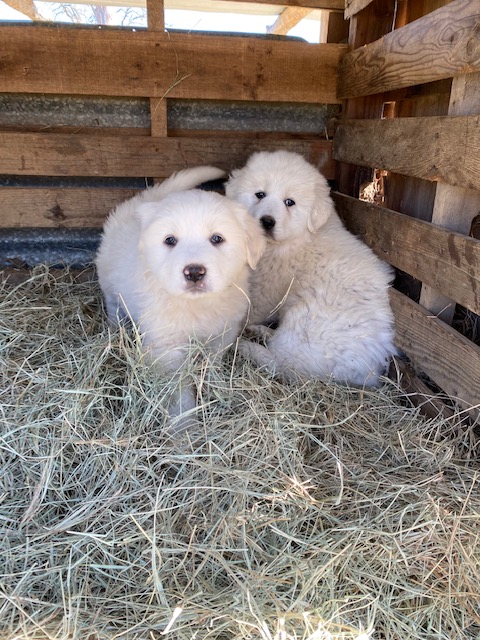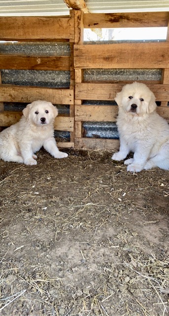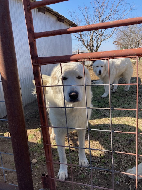 This is the story behind our Pyredoodle puppies!! We purchased two Great Pyrenees LGDs (Livestock Guardian Dogs) in February, 2022 to watch over our Micro-Miniature Herefords. Since they were as white as snow AND we got them during a cold snap, of course we named them Anna and Elsa after the Disney Frozen characters. Here are pictures of Anna and Elsa and pictures of their parents from the farms where they were born.